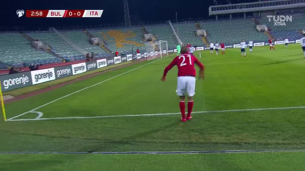 Tiro atajado raso al centro del arco. Andrej Galabinov (Bulgaria) Disparo con la derecha desde el lado izquierdo dentro del área. Asistencia de Spas Delev.
