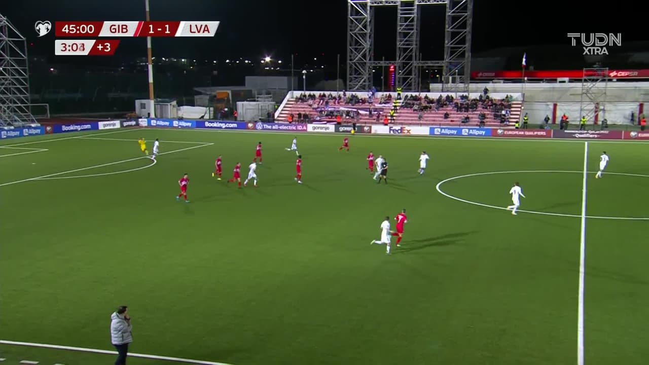 Tiro atajado junto al lado derecho de la portería. Andrejs Ciganiks (Letonia) zurdazo desde fuera del área. Asistencia de Vladislavs Gutkovskis.