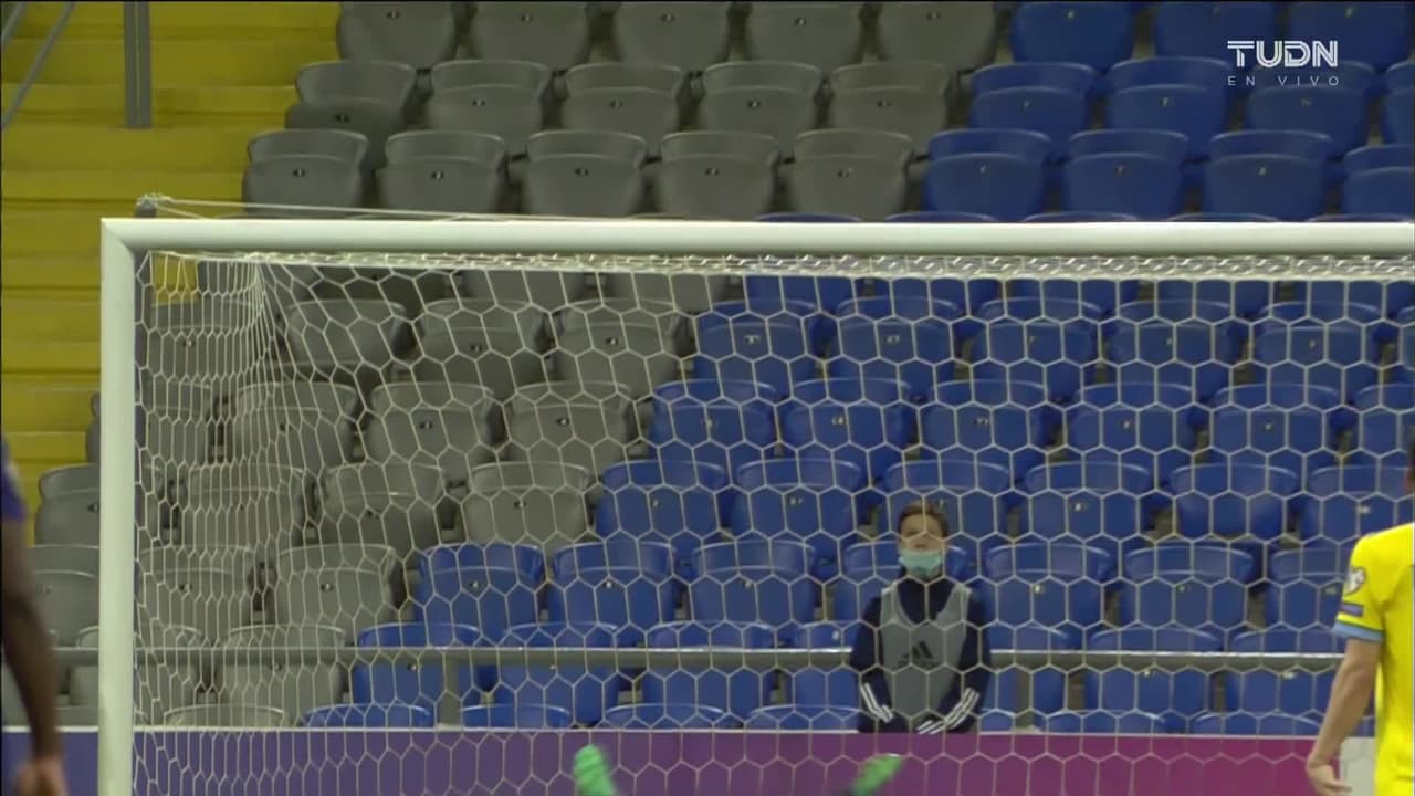 Tiro atajado. Anthony Martial (Francia) disparo de cabeza desde muy cerca.