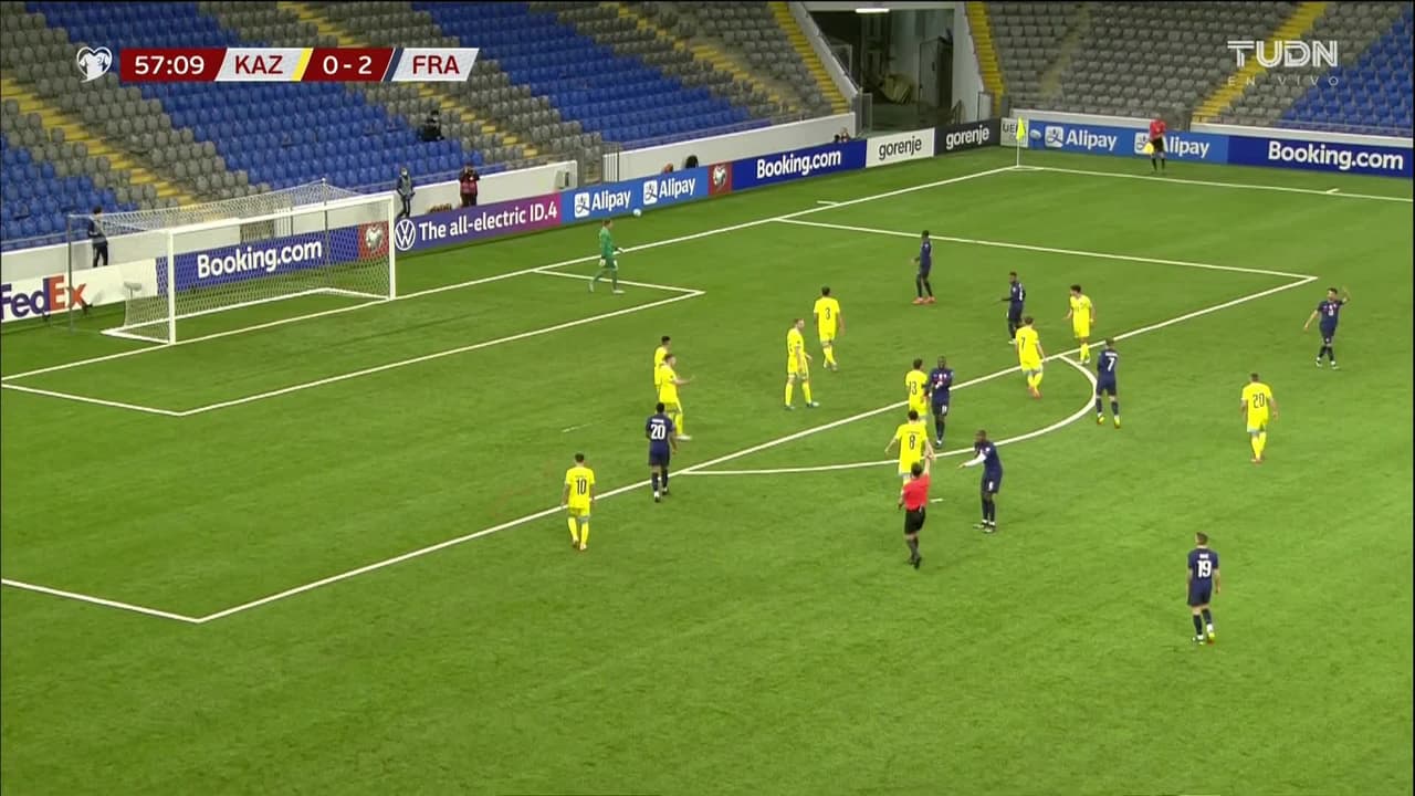 Tiro atajado al ángulo superior derecho. Anthony Martial (Francia) Disparo con la derecha desde fuera del área.