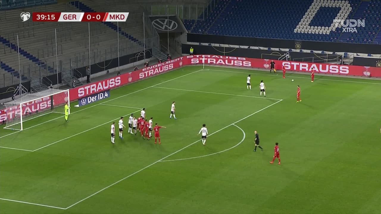 Tiro atajado. Arijan Ademi (Macedonia) disparo de cabeza a quemarropa desde el lado derecho.