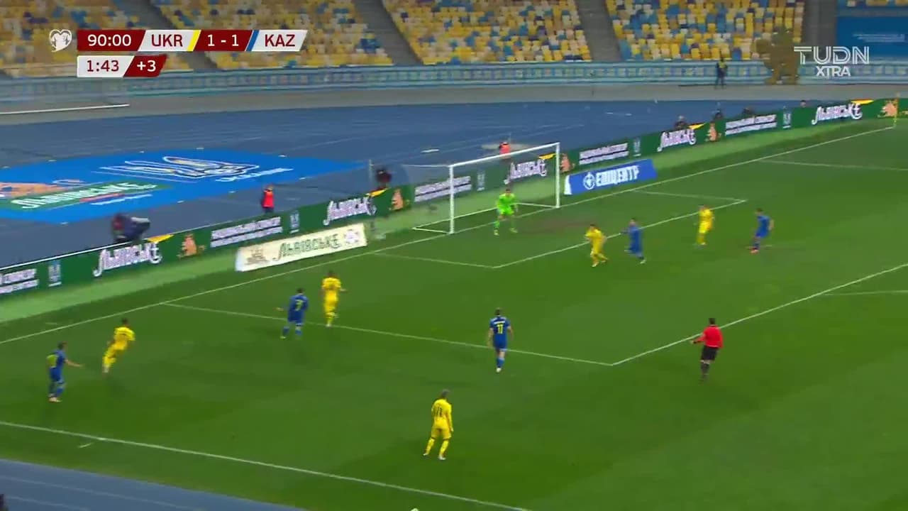 Tiro atajado junto al lado derecho de la portería. Artem Dovbyk (Ucrania) Disparo con la derecha desde el centro del área. Asistencia de Oleksandr Zubkov.