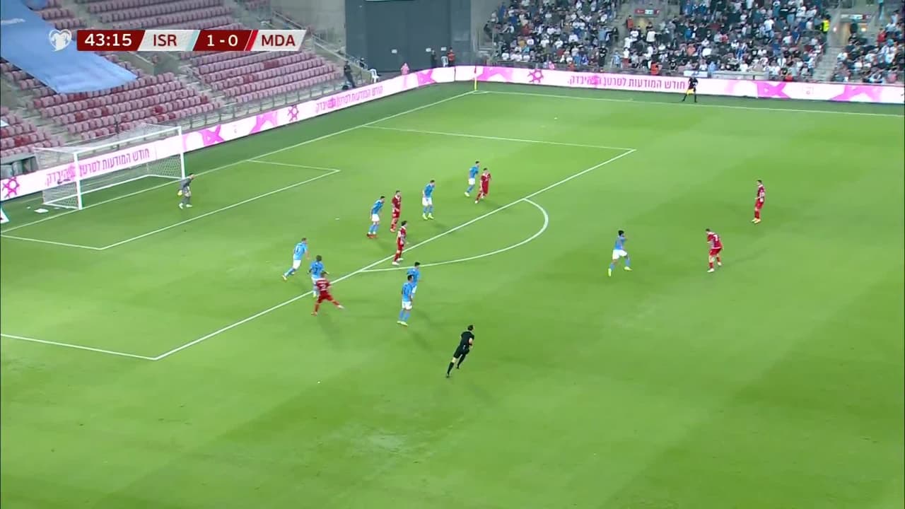 Tiro atajado. Artur Ionita (Moldova) zurdazo desde fuera del área.