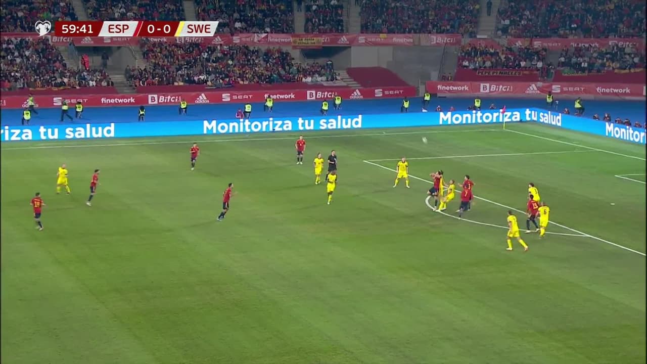 Tiro atajado junto al lado derecho de la portería. Aymeric Laporte (España) Disparo con la derecha desde fuera del área.
