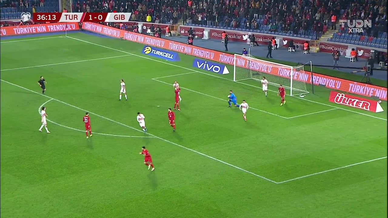 Tiro atajado. Baris Alper Yilmaz (Turquía) Disparo con la derecha desde el centro del área.