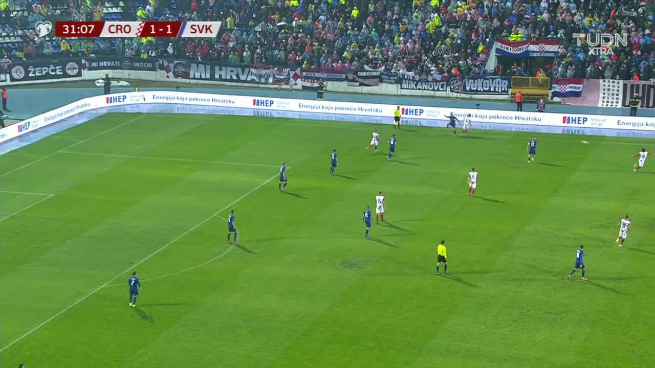 Tiro atajado junto al lado derecho de la portería. Borna Barisic (Croacia) zurdazo desde fuera del área. Asistencia de Andrej Kramaric.