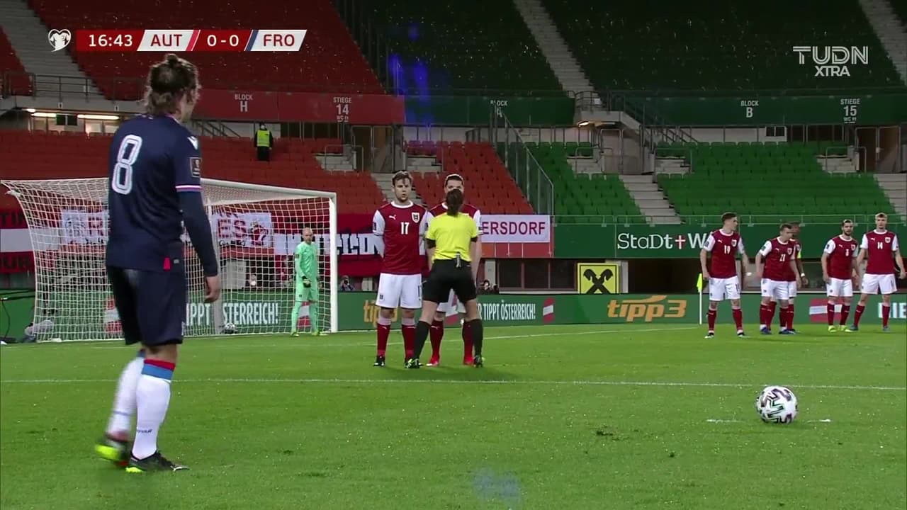 Tiro atajado por abajo a la izquierda. Brandur Hendriksson Olsen (Islas Faroe) Disparo con la derecha desde muy lejos por la izquierda y en posición complicada.