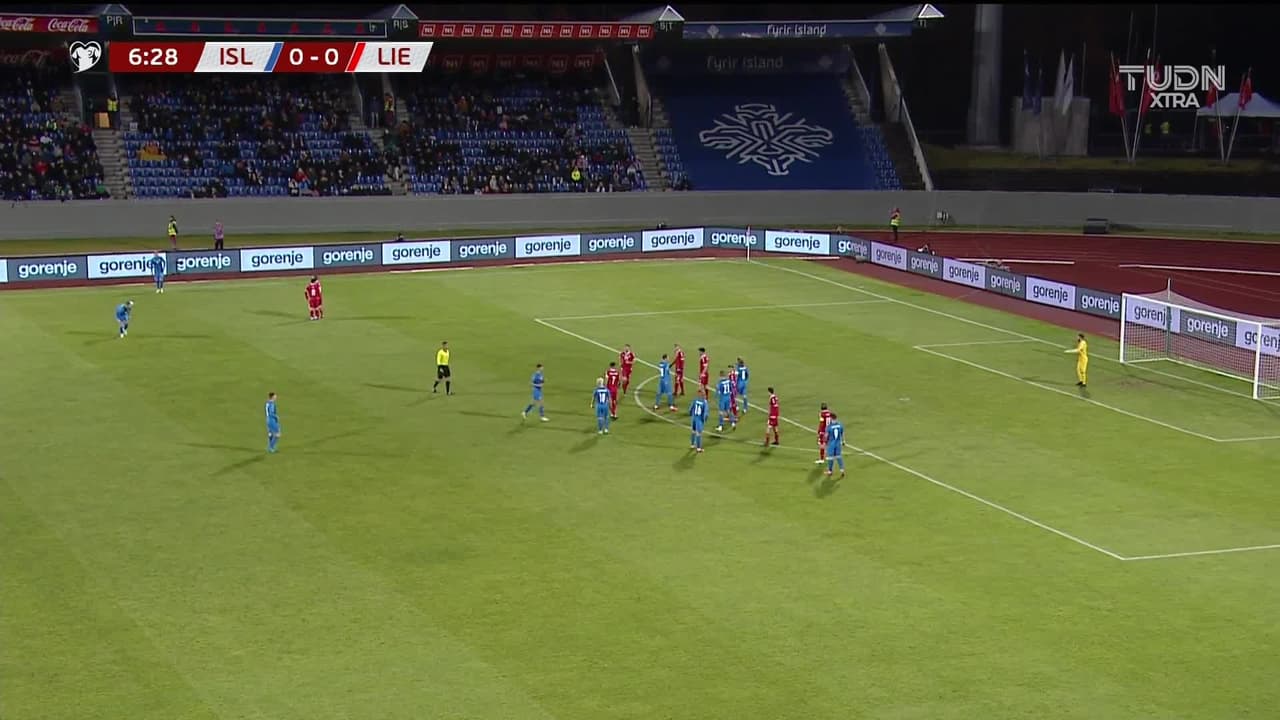 Tiro atajado por abajo a la izquierda. Brynjar Bjarnason (Islandia) disparo de cabeza desde el centro del área. Asistencia de Jon Dagur Thorsteinsson con un centro al área.