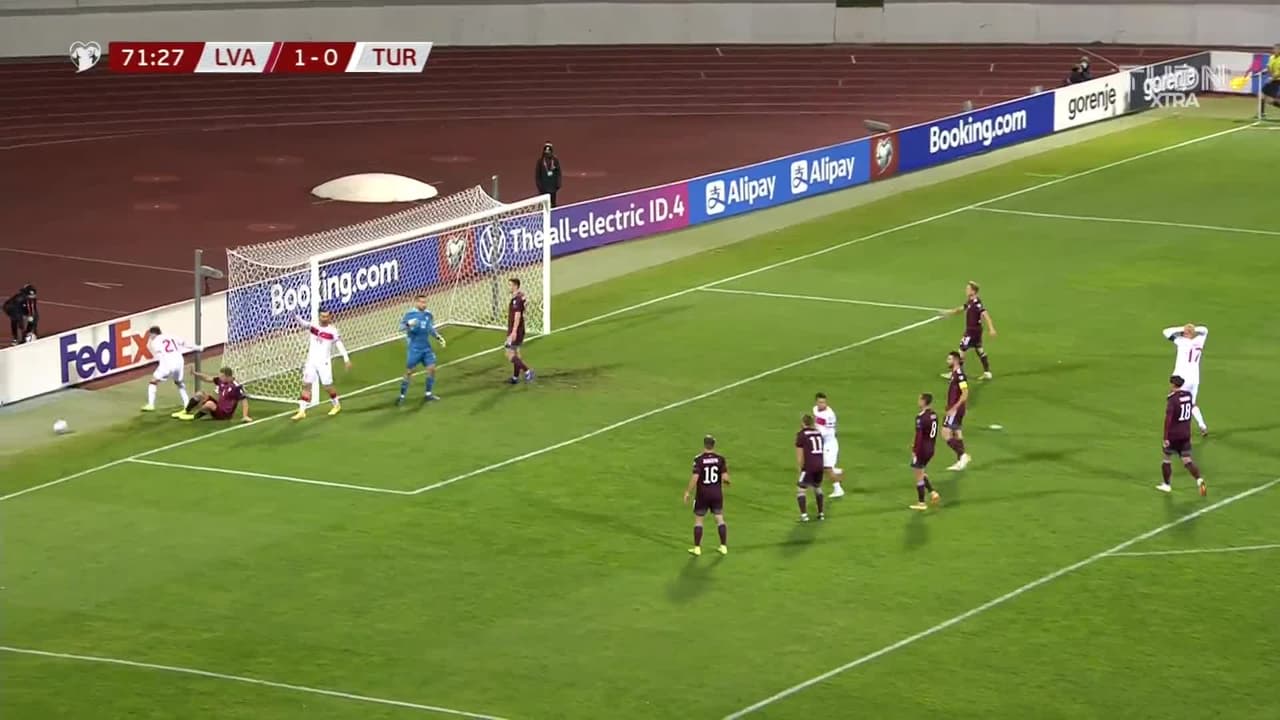 Tiro atajado por abajo a la izquierda. Burak Yilmaz (Turquía) Disparo con la derecha desde fuera del área.
