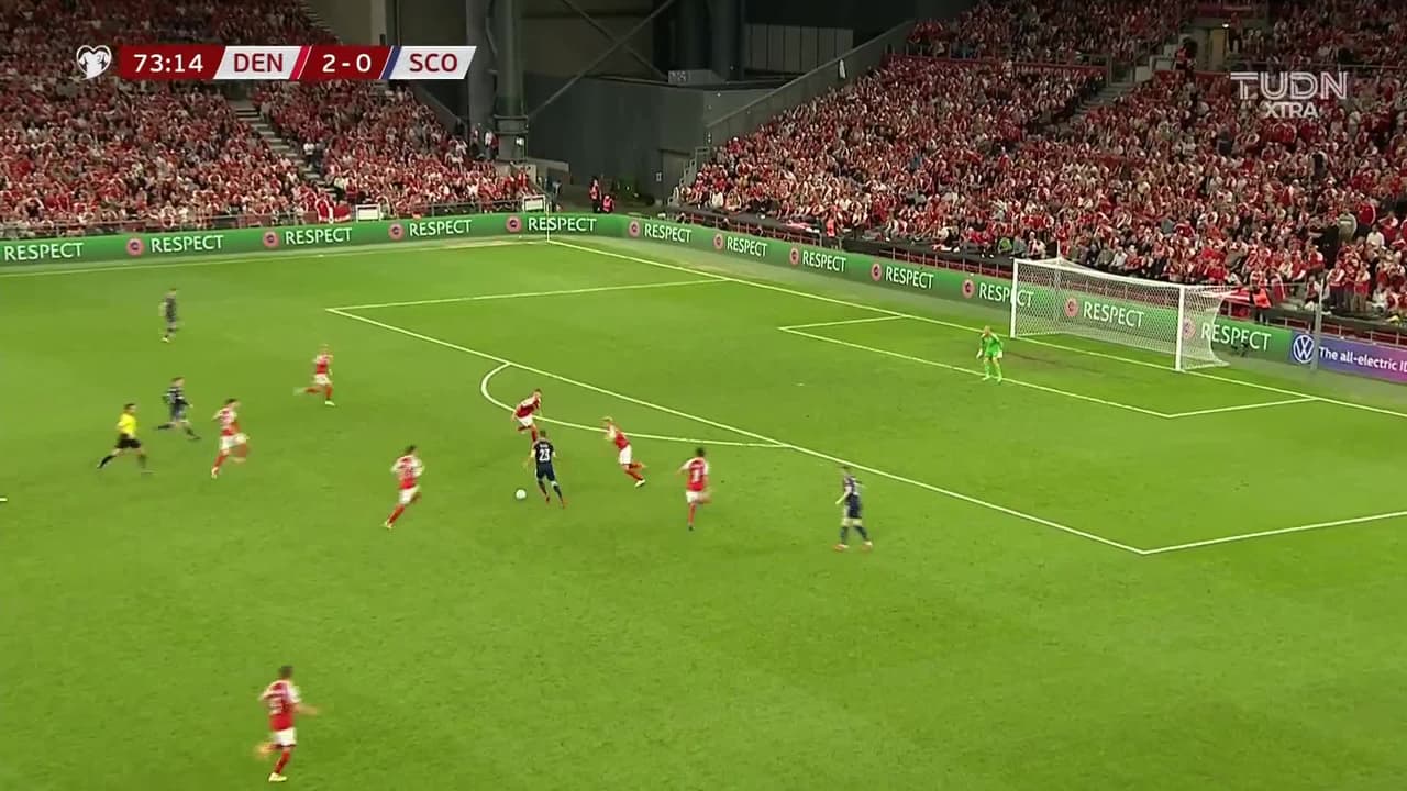 Tiro atajado. Callum McGregor (Escocia) zurdazo desde fuera del área.