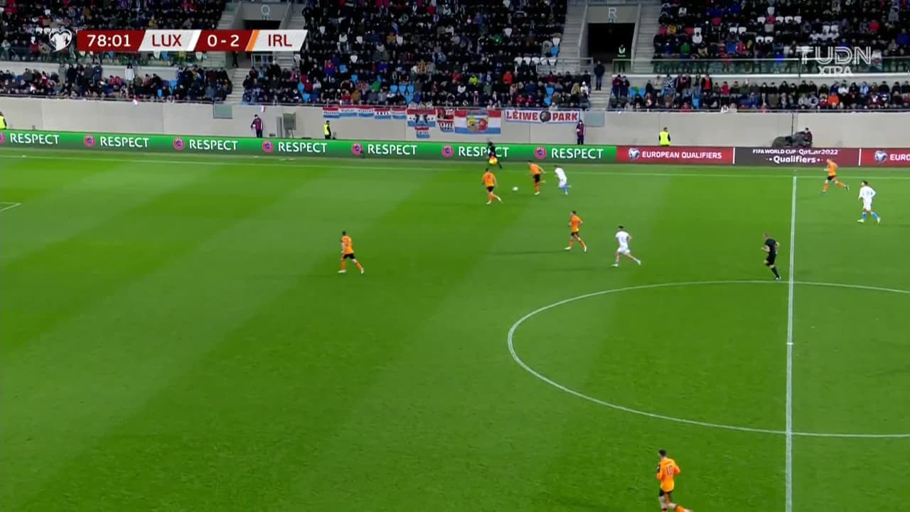 Tiro atajado Por arriba en el centro del arco. Callum Robinson (Irlanda) Disparo con la derecha desde fuera del área. Asistencia de Matt Doherty.