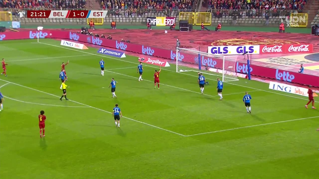 Tiro atajado raso al centro del arco. Christian Benteke (Bélgica) Disparo con la derecha desde el lado derecho dentro del área. Asistencia de Hans Vanaken.
