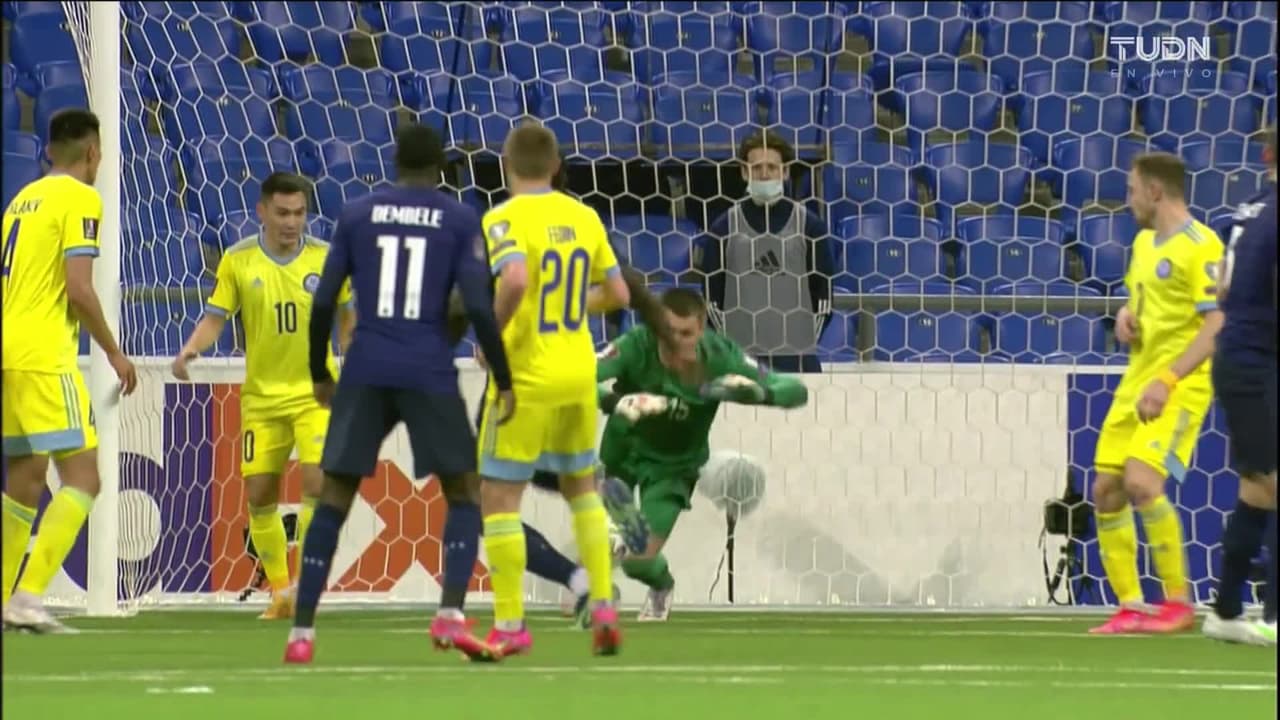 Tiro atajado por abajo a la izquierda. Clément Lenglet (Francia) disparo de cabeza desde el centro del área. Asistencia de Thomas Lemar con un centro al área.