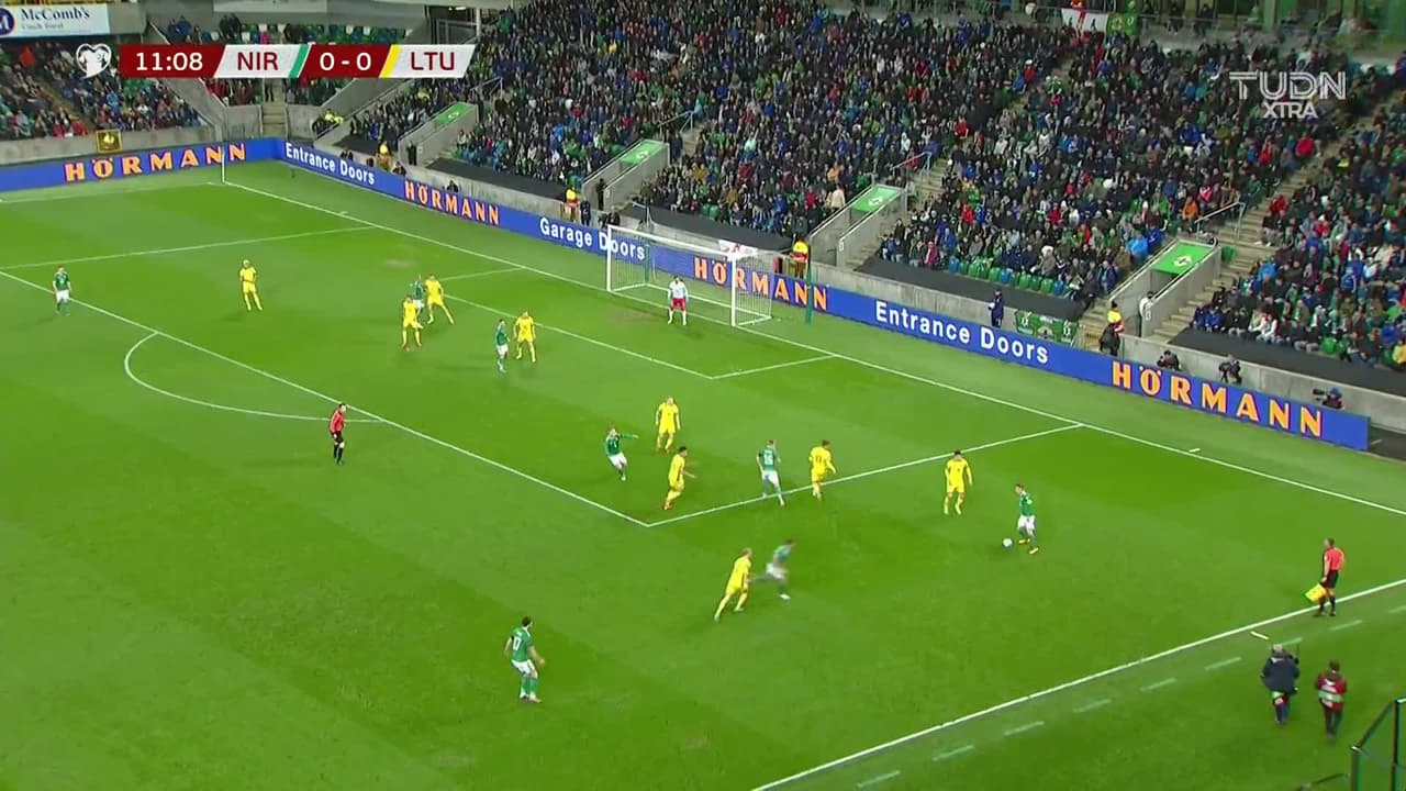 Tiro atajado Por arriba en el centro del arco. Conor Washington (Irlanda del Norte) Disparo con la derecha desde el centro del área. Asistencia de Alistair McCann.