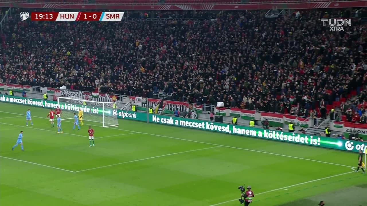 Tiro atajado. Daniel Gazdag (Hungría) Disparo con la derecha desde el centro del área.