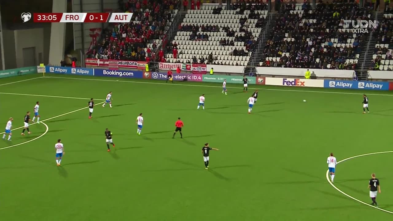 Tiro atajado. David Alaba (Austria) zurdazo desde fuera del área.