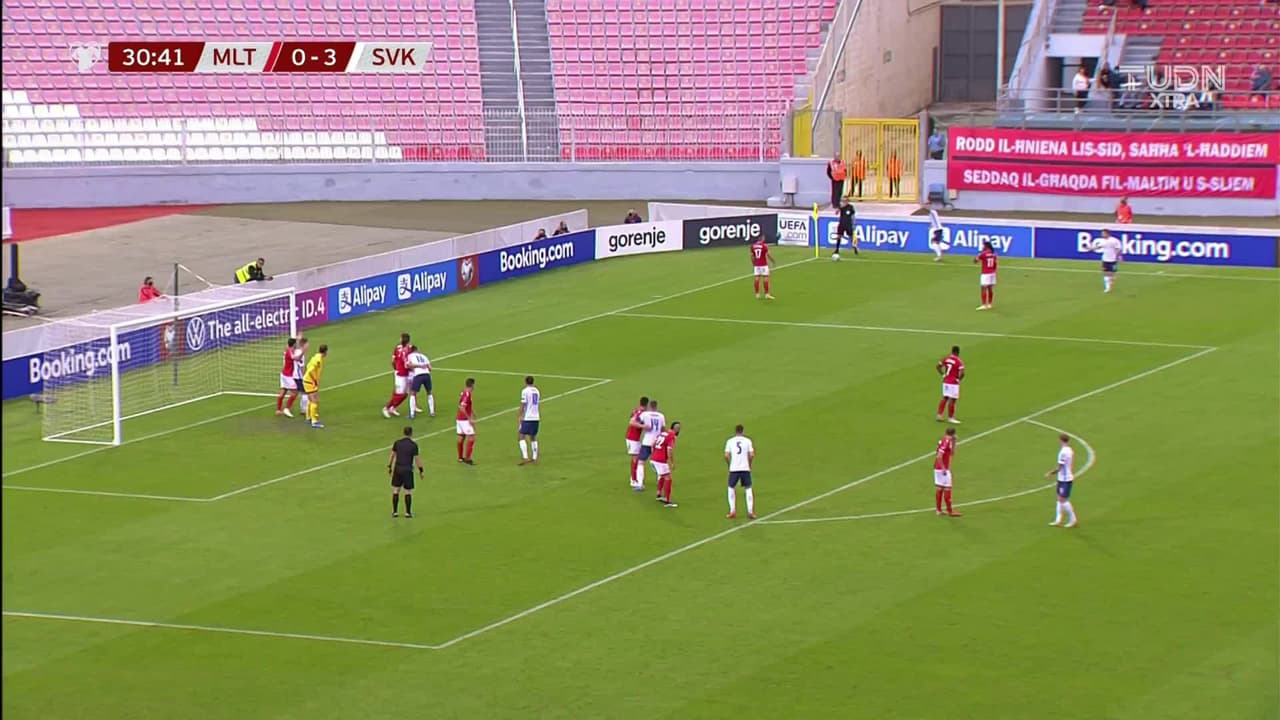Tiro atajado. Dávid Hancko (Eslovaquia) disparo de cabeza a quemarropa desde el lado derecho.