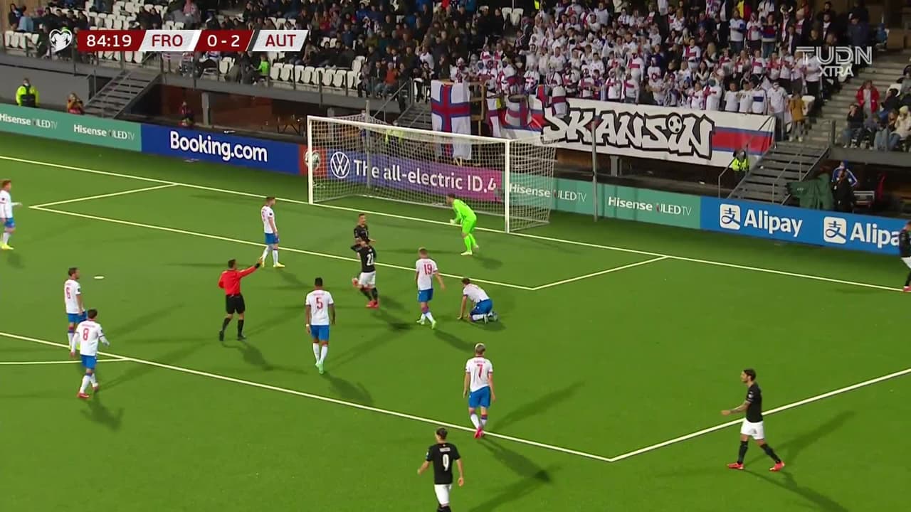 Tiro atajado. Dejan Ljubicic (Austria) Disparo con la derecha desde el centro del área.
