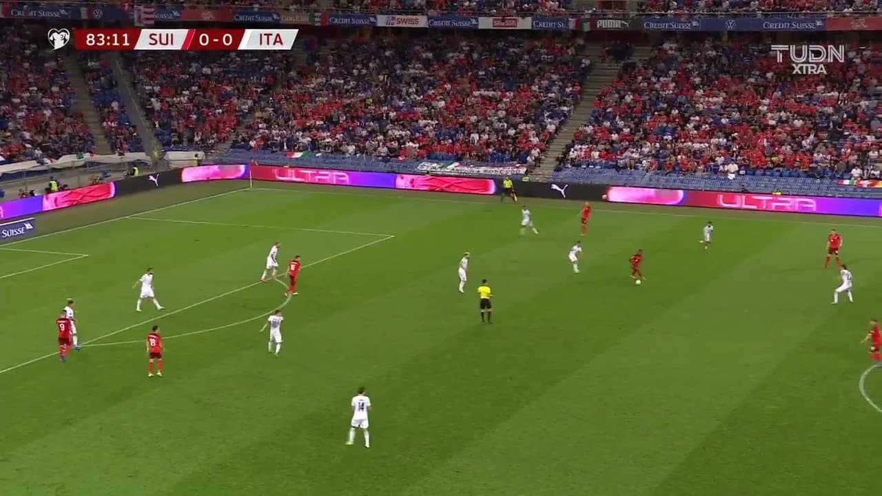 Tiro atajado junto al lado derecho de la portería. Denis Zakaria (Suiza) Disparo con la derecha desde el lado derecho dentro del área. Asistencia de Silvan Widmer.