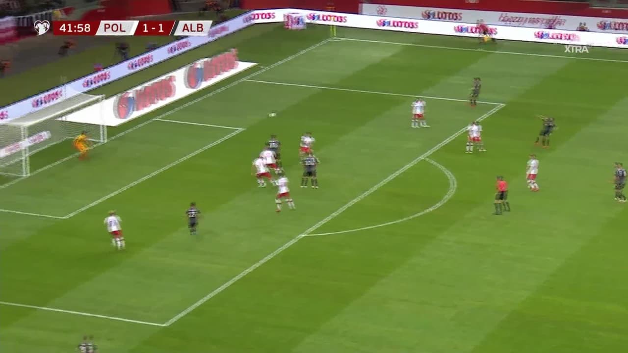Remate parado por bajo a la izquierda. Elseid Hysaj (Albania) remate con la izquierda desde fuera del área.