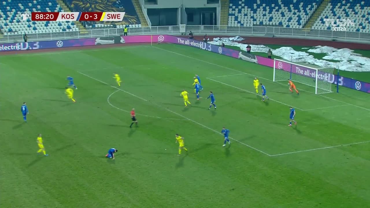 Tiro atajado raso al centro del arco. Emil Forsberg (Suecia) Disparo con la derecha desde el centro del área. Asistencia de Dejan Kulusevski.