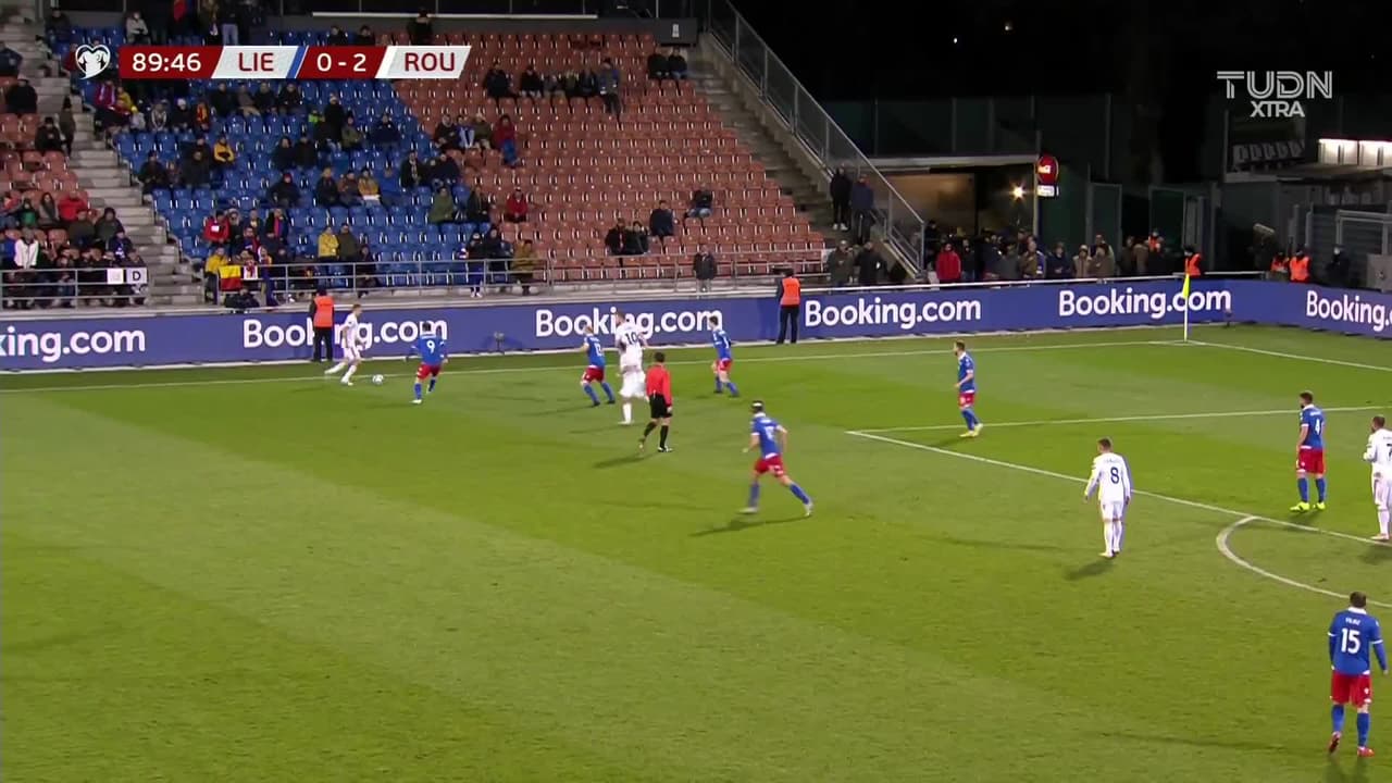 Tiro atajado raso al centro del arco. Enes Sali (Rumanía) zurdazo desde el centro del área.