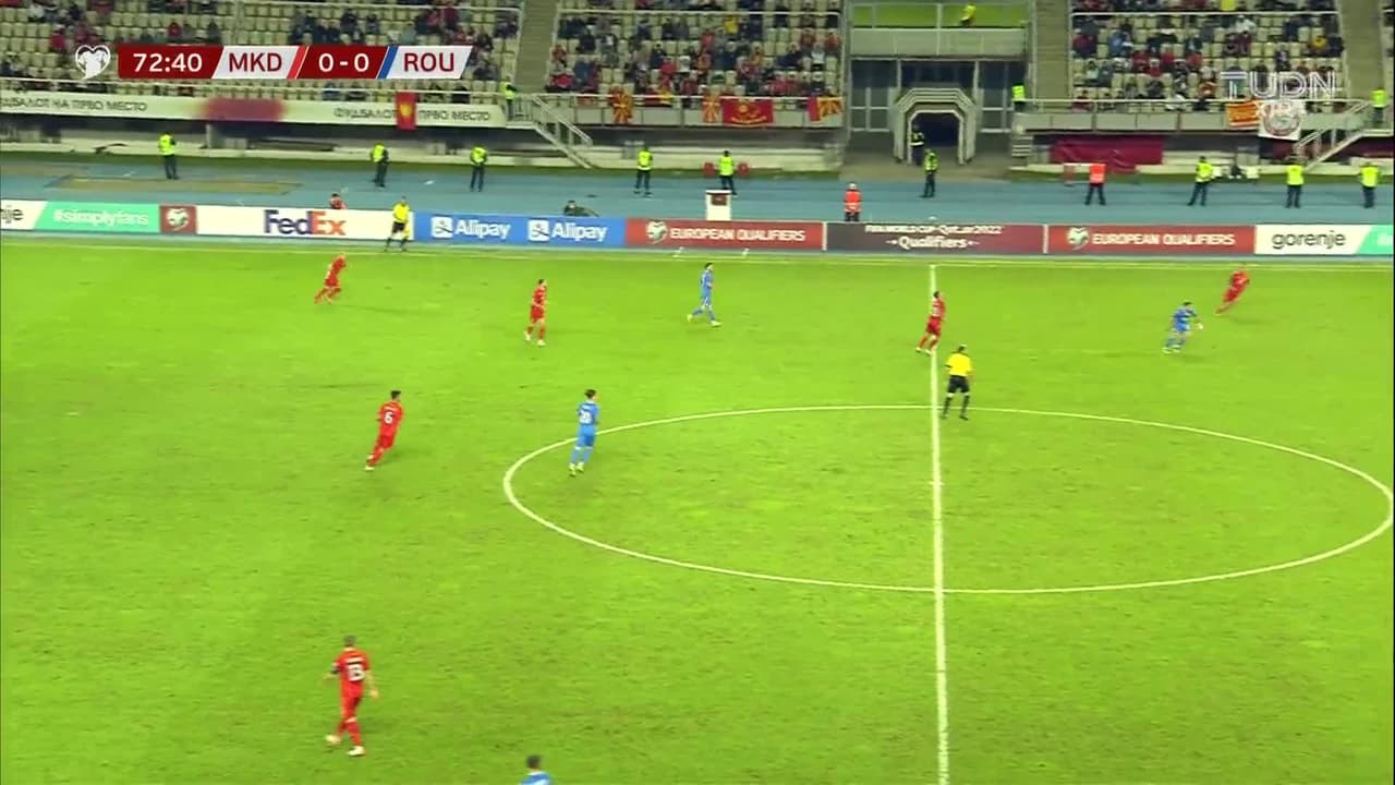 Remate parado bajo palos a rás de suelo. Enis Bardhi (ARY de Macedonia) remate con la derecha desde fuera del área. Asistencia de Kire Ristevski con un pase de cabeza.