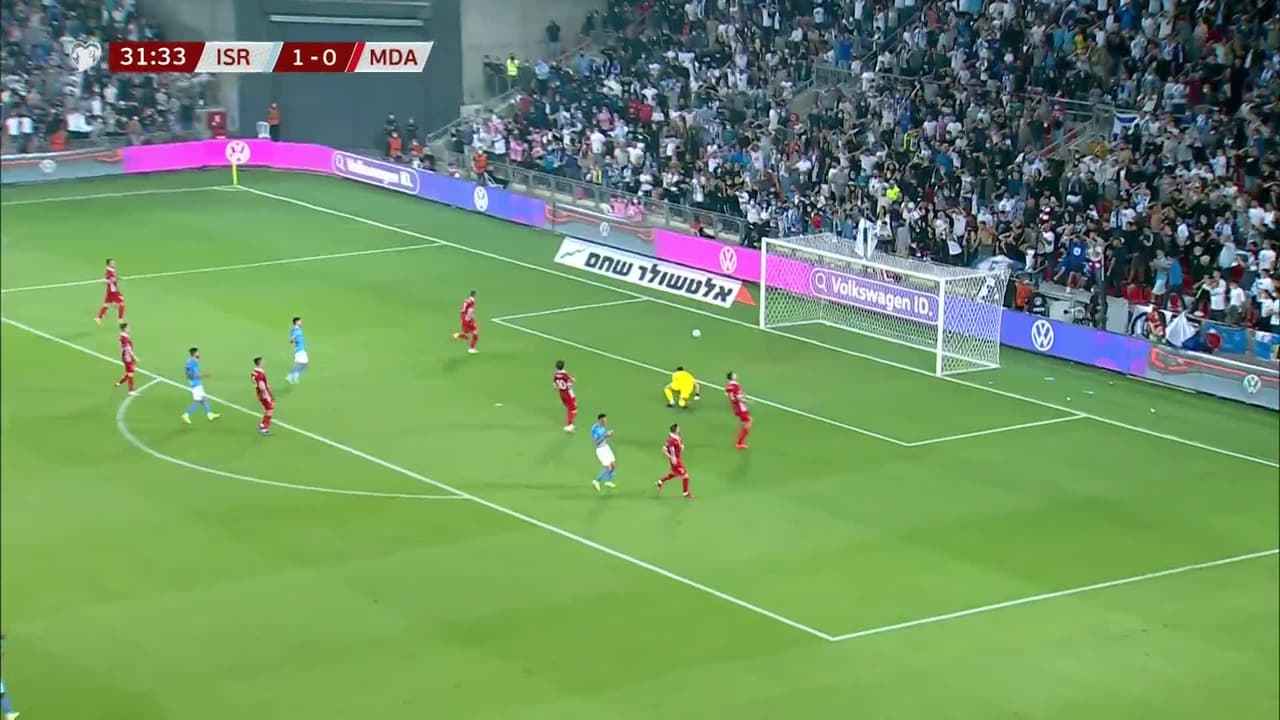 Tiro atajado raso al centro del arco. Eran Zahavi (Israel) Disparo con la derecha desde el centro del área. Asistencia de Munas Dabbur después de un pase en profundidad.