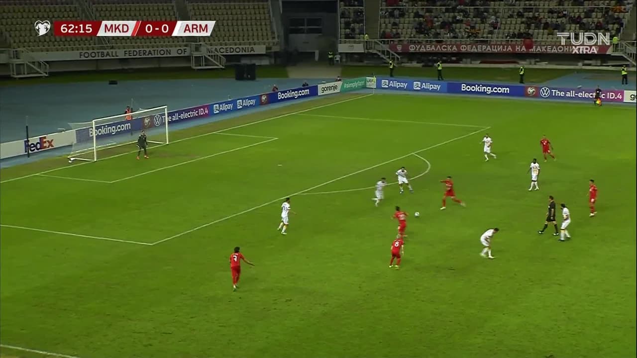 Tiro atajado Por arriba en el centro del arco. Ezgjan Alioski (Macedonia) zurdazo desde fuera del área. Asistencia de Adis Jahovic.