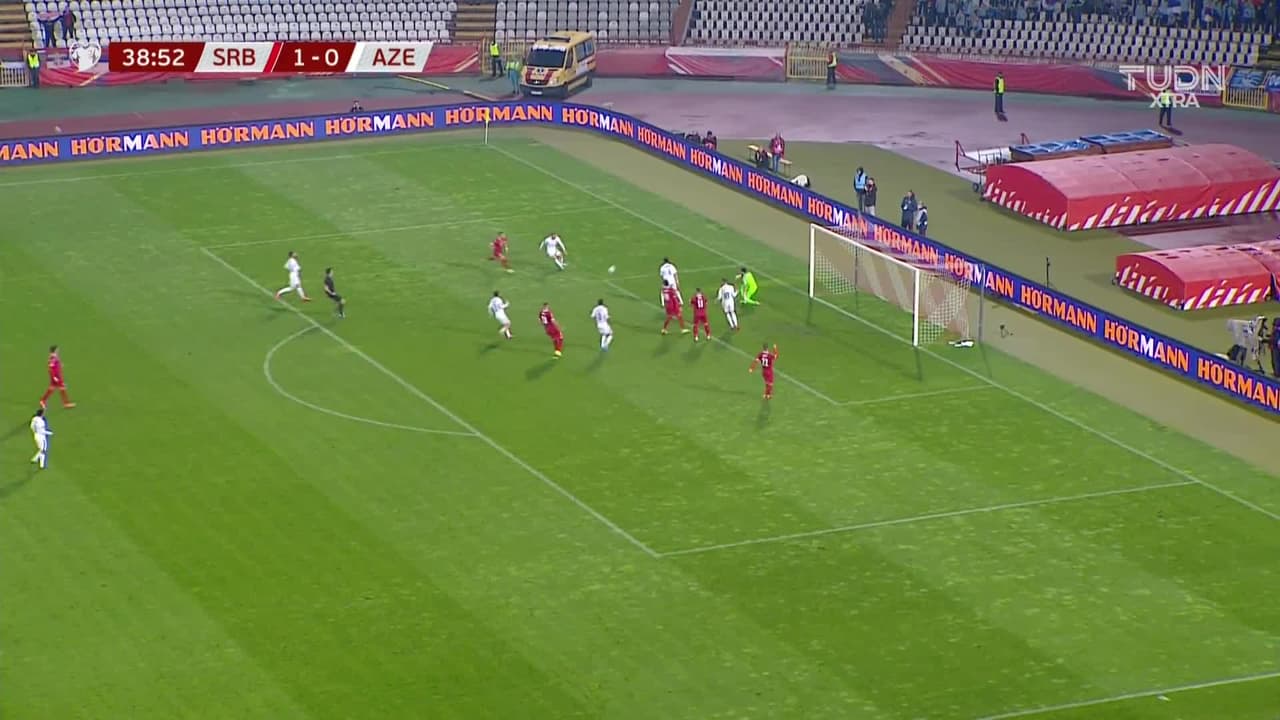 Tiro atajado raso al centro del arco. Filip Kostic (Serbia) zurdazo desde el lado izquierdo dentro del área. Asistencia de Sergej Milinkovic-Savic.