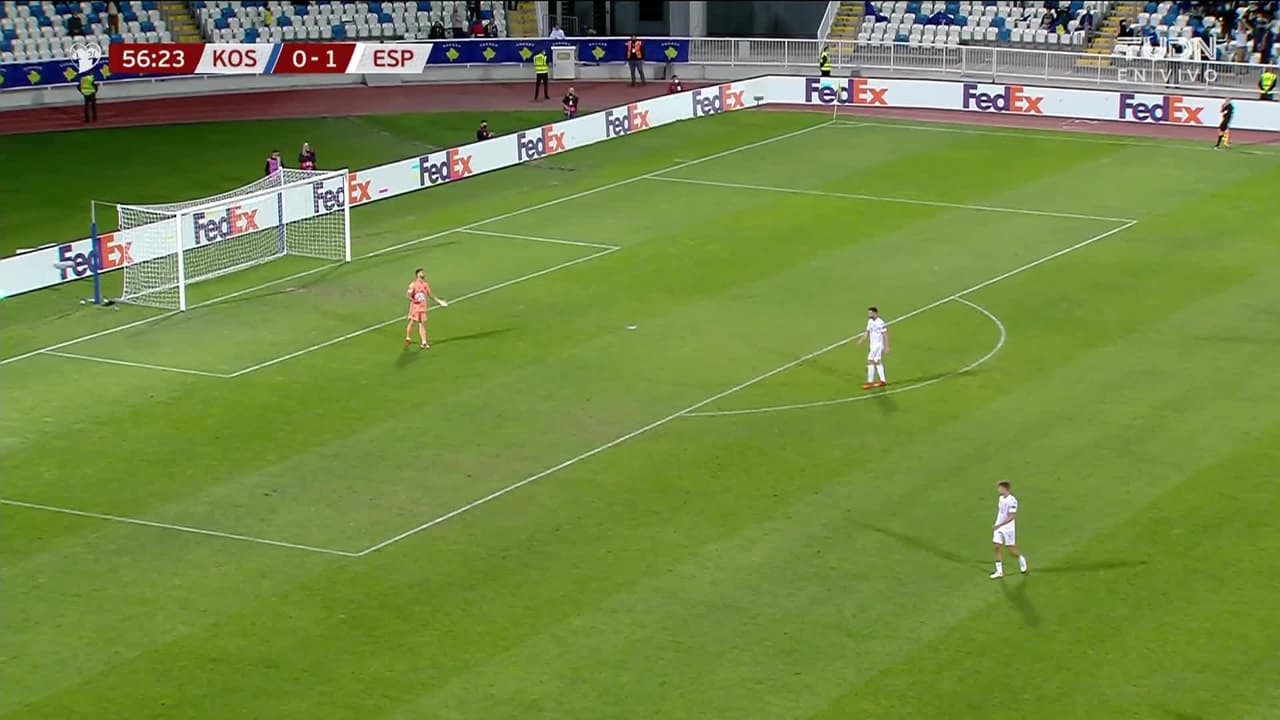 Remate parado. Florian Loshaj (Kosovo) remate con la izquierda desde mas de 30 metros.
