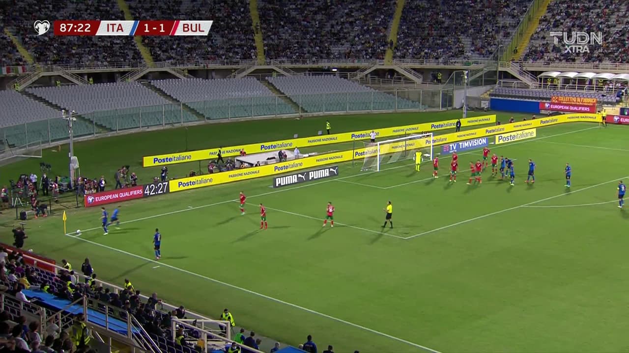 Tiro atajado. Francesco Acerbi (Italia) zurdazo desde fuera del área.