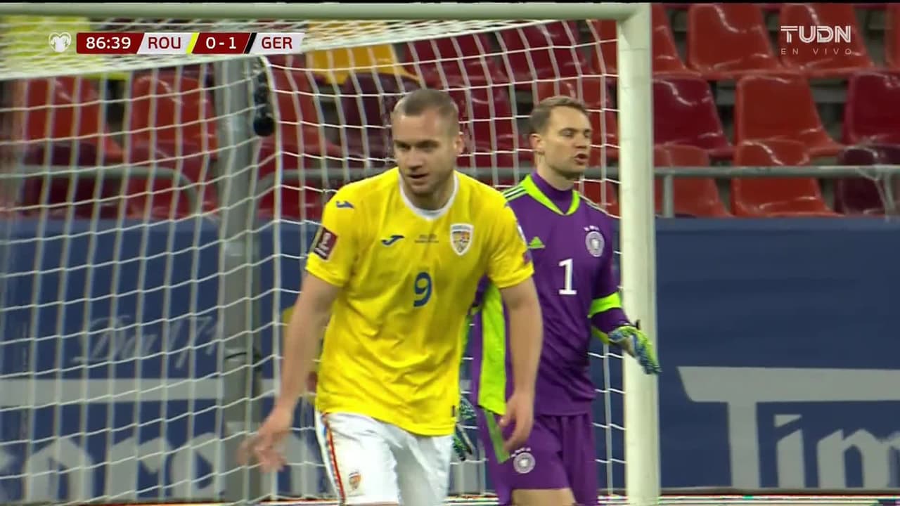 Tiro atajado raso al centro del arco. George Puscas (Rumanía) Disparo con la derecha desde el centro del área. Asistencia de Alexandru Cicaldau.