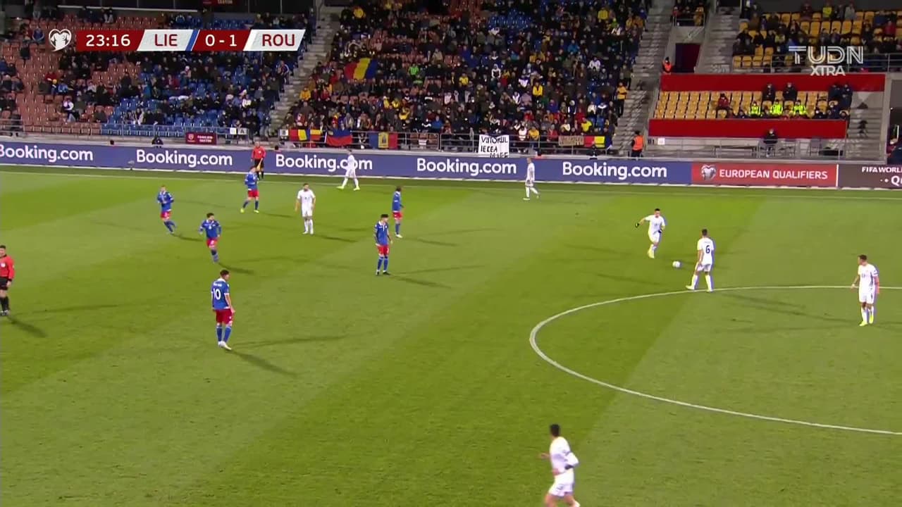 Tiro atajado raso al centro del arco. George Puscas (Rumanía) zurdazo desde el centro del área. Asistencia de Nicolae Claudiu Stanciu después de un pase en profundidad.