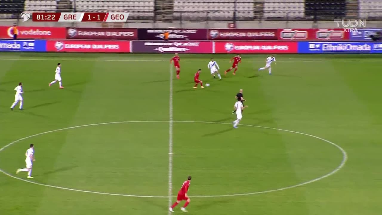 Tiro atajado por abajo a la izquierda. Giorgi Kvilitaia (Georgia) Disparo con la derecha desde fuera del área. Asistencia de Otar Kiteishvili.