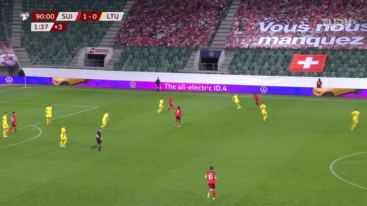 Tiro atajado raso al centro del arco. Haris Seferovic (Suiza) disparo de cabeza desde el centro del área. Asistencia de Admir Mehmedi con un centro al área.