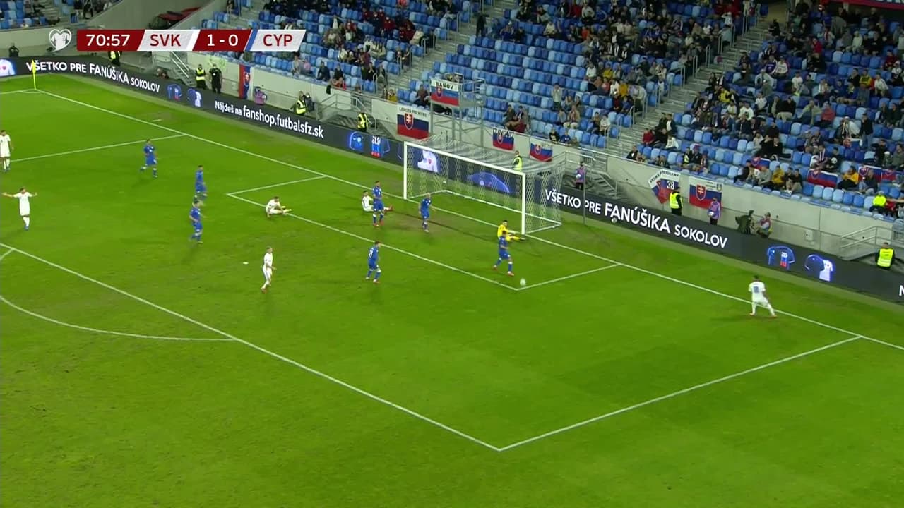 Remate parado. Ivan Schranz (Eslovaquia) remate con la derecha desde el lado derecho del interior del área.