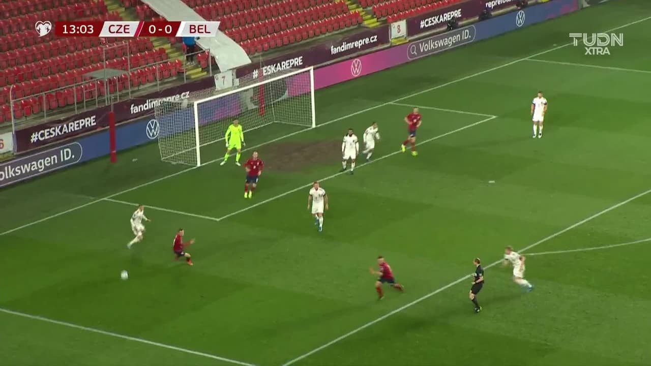 Tiro atajado raso al centro del arco. Jakub Jankto (República Checa) zurdazo desde el lado izquierdo dentro del área.