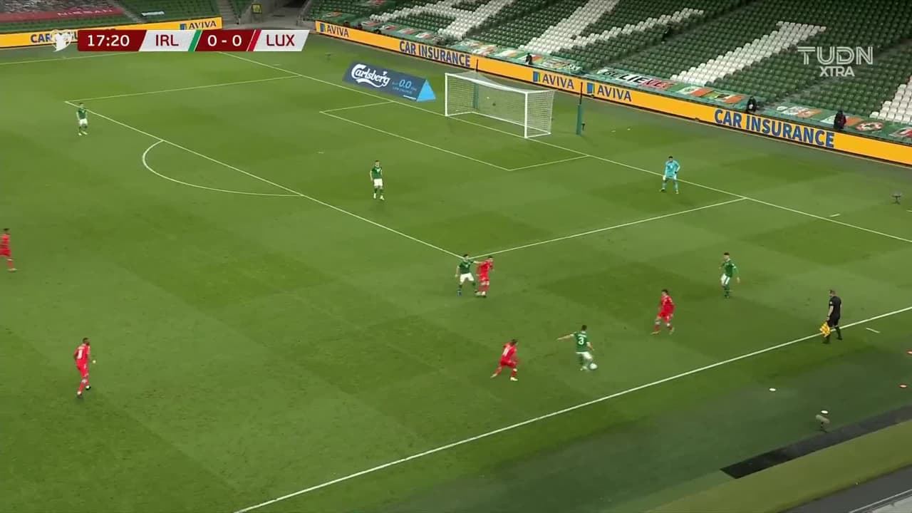 Tiro atajado por abajo a la izquierda. James Collins (Irlanda) Disparo con la derecha desde muy cerca. Asistencia de Callum Robinson con un centro al área.