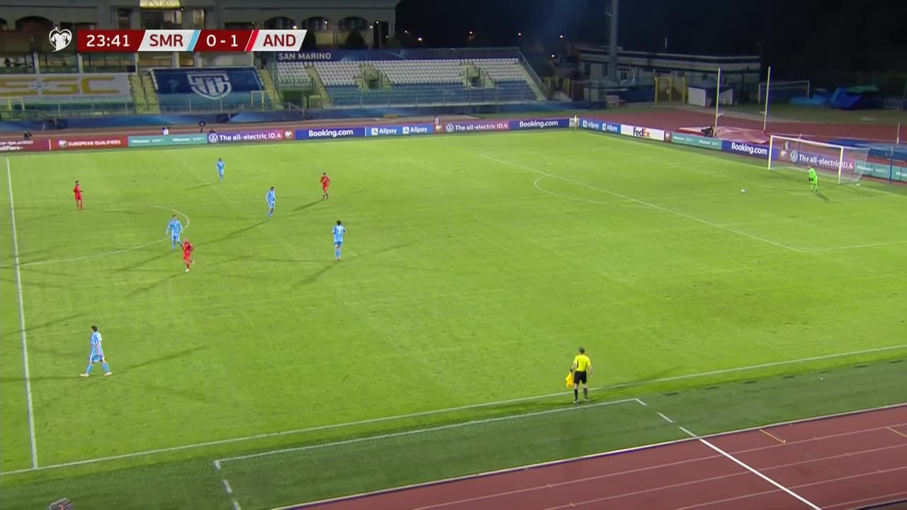 Tiro atajado junto al lado derecho de la portería. Joan Cervós (Andorra) zurdazo desde la banda derecha.