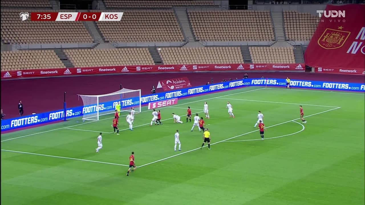 Tiro atajado por abajo a la izquierda. Jordi Alba (España) zurdazo sin ángulo desde la izquierda. Asistencia de Koke.
