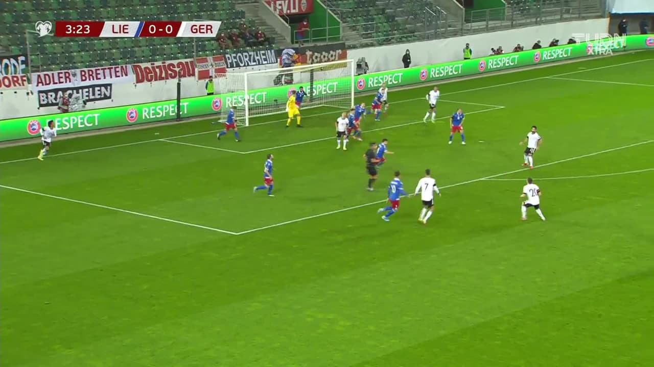 Tiro atajado raso al centro del arco. Joshua Kimmich (Alemania) Disparo con la derecha desde el centro del área. Asistencia de Leroy Sané.