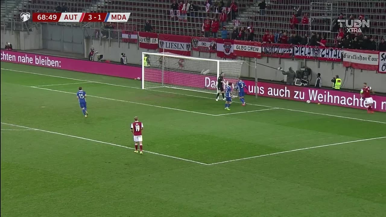 Tiro atajado junto al lado derecho de la portería. Karim Onisiwo (Austria) Disparo con la derecha desde fuera del área. Asistencia de Marcel Sabitzer.