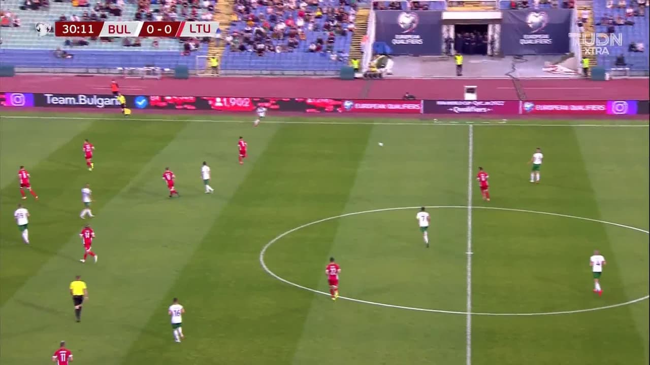 Tiro atajado raso al centro del arco. Kiril Despodov (Bulgaria) Disparo con la derecha desde el centro del área. Asistencia de Atanas Iliev después de un pase en profundidad.