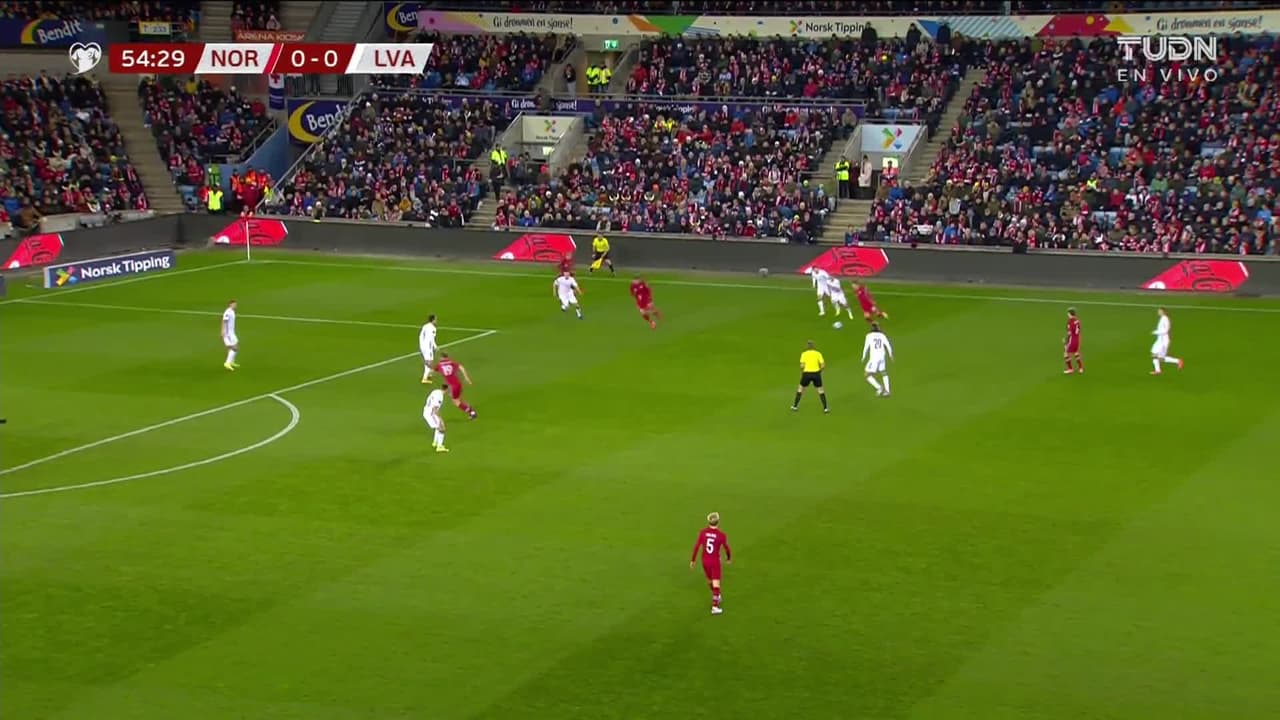 Tiro atajado raso al centro del arco. Kristian Thorstvedt (Noruega) zurdazo desde el centro del área. Asistencia de Alexander Sørloth.