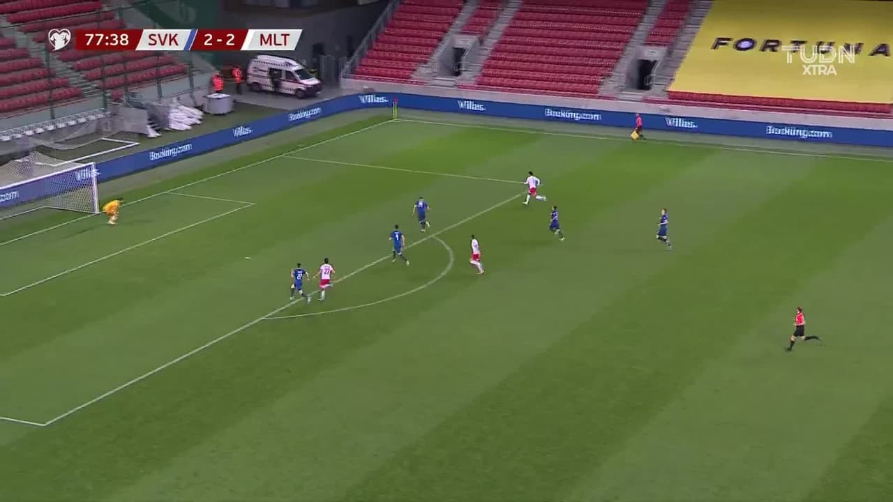 Tiro atajado. Kyrian Nwoko (Malta) Disparo con la derecha desde el lado derecho dentro del área.