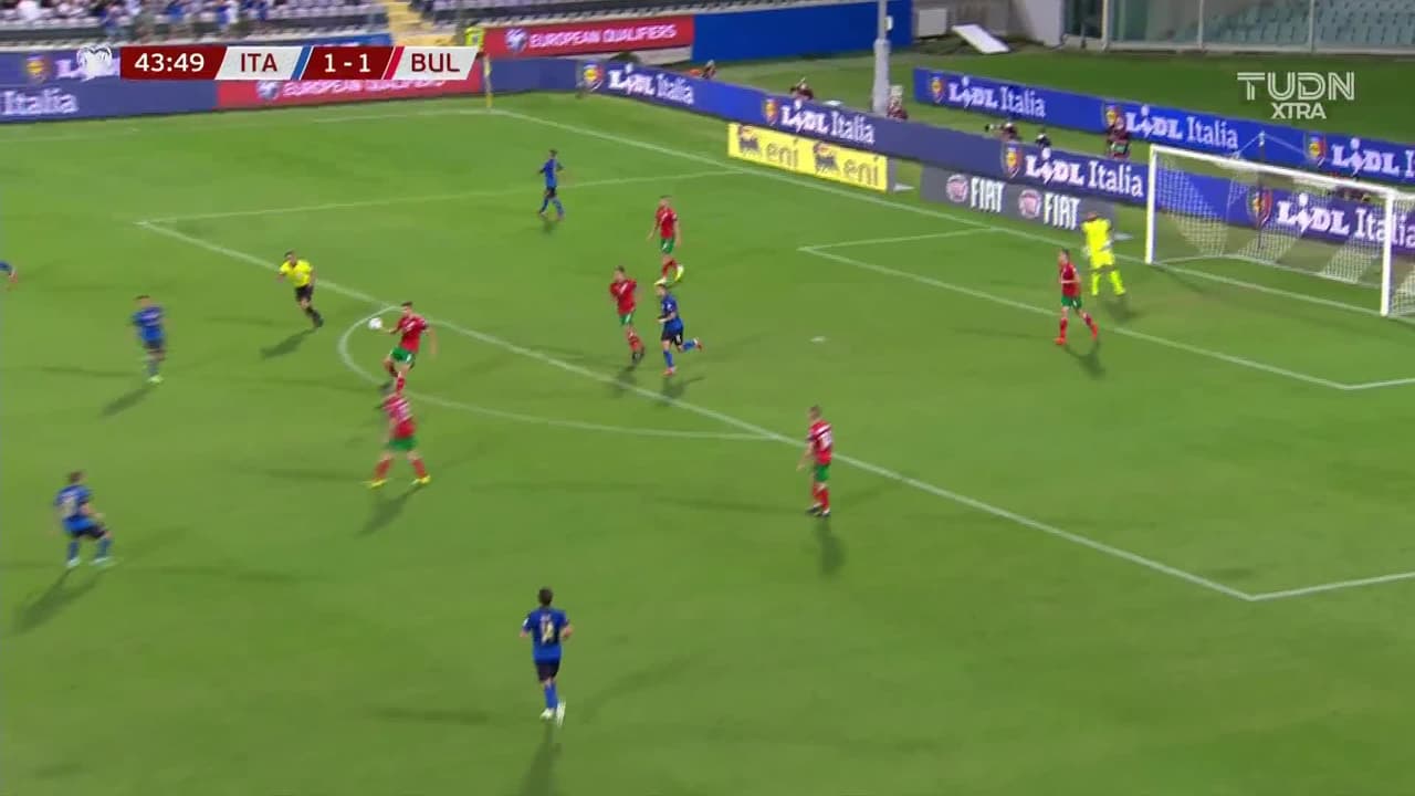 Tiro atajado junto al lado derecho de la portería. Lorenzo Insigne (Italia) zurdazo desde el centro del área. Asistencia de Leonardo Bonucci pase largo.