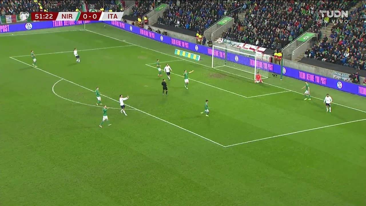 Tiro atajado junto al lado derecho de la portería. Lorenzo Insigne (Italia) Disparo con la derecha sin ángulo desde la derecha. Asistencia de Leonardo Bonucci pase largo.