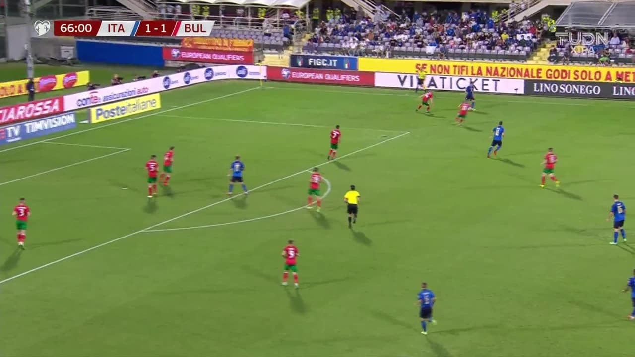 Remate parado. Lorenzo Insigne (Italia) remate con la derecha desde fuera del área.