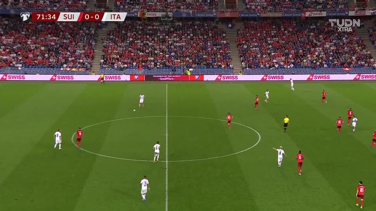 Remate parado bajo palos a rás de suelo. Lorenzo Insigne (Italia) remate con la izquierda desde el centro del área. Asistencia de Manuel Locatelli después de un pase en profundidad.